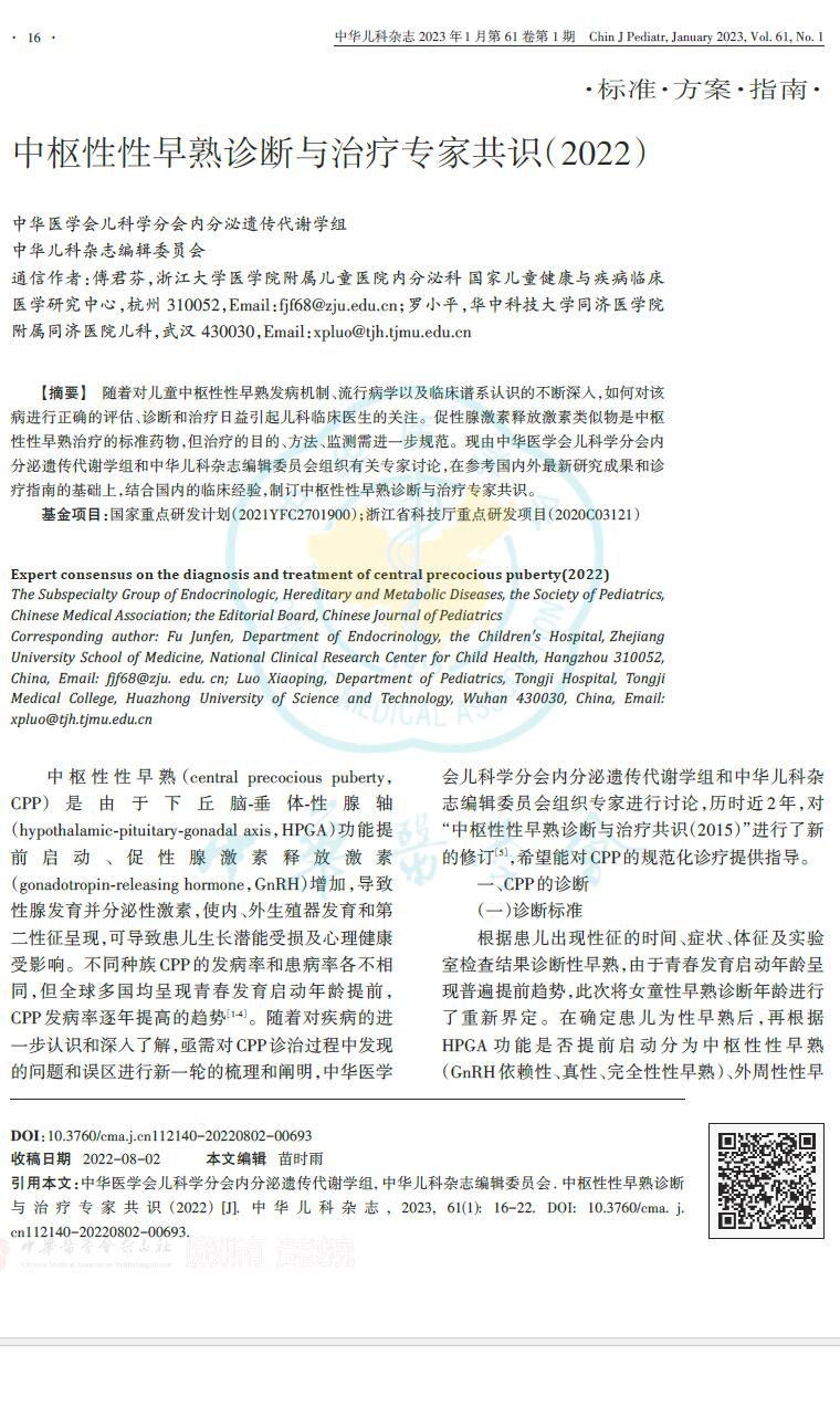 中樞性性早熟診斷與治療專(zhuān)家共識(shí)(2022)
