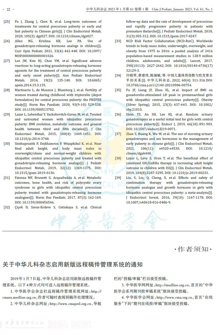 中樞性性早熟診斷與治療專(zhuān)家共識(shí)(2022)